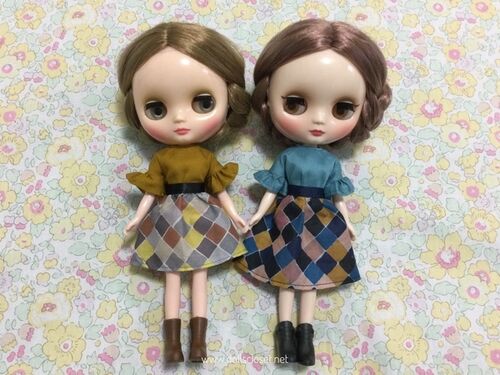 こんにちは、さびこ (@sabineko325)です。ミディちゃんにブラウスとスカートを色違いで2着ずつ。ちょっとくすんだ秋色のコーデです♪